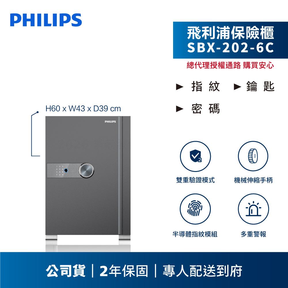 首頁 / 保險櫃 / 【飛利浦PHILIPS】SBX202-6C 智能保險櫃